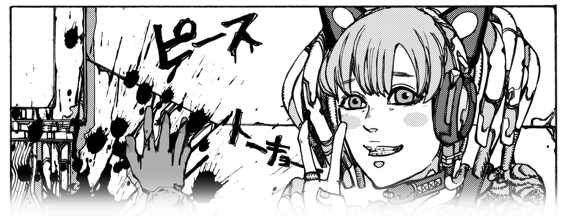 Meanwhile, she is known for her detailed manga artwork, inspired by filigree detailed artist Katsuhiro Otomo. She has performed in countries such as Japan, USA, Germany, Italy, Spain and others. Her unique style and character design set new standards for numerous media like events, wall art, PV and more. She is also a passionate cosplayer.
